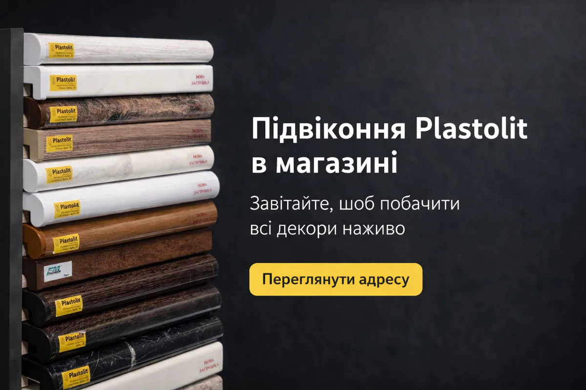 Приїжджайте на наш склад, щоб особисто оглянути зразки підвіконників Plastolit. Це безкоштовно та без зобов'язань.